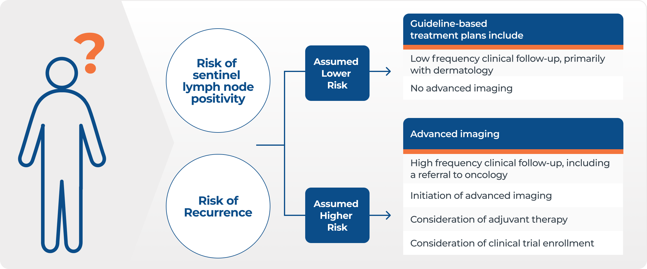 Traditional staging of a melanoma deeper than 0.75-1.0mm requires checking the lymph nodes with a procedure called sentinel lymph node biopsy. A positive sentinel lymph node biopsy (SLNB+) result upstages a patient from Stage I or II to Stage III. While Stage III patients have the highest risk for their melanomas spreading, about 2 out of every 3 patients that have melanoma spread are Stage I or II, including those who had a SLNB with a negative result.